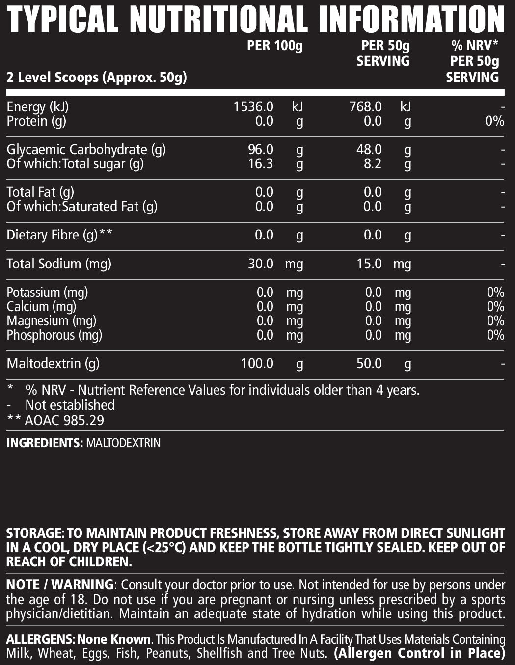 Maltodextrin is a complex carbohydrate that is easy to digest and is rapidly absorbed by the body, making it the ideal fuel for pre- and post-exercise. Maltodextrin is rapidly absorbed, enhancing uptake of other supplements and nutrients. Using NPL Maltodextrin before, during, and after exercise may enhance strength, endurance, and recovery.