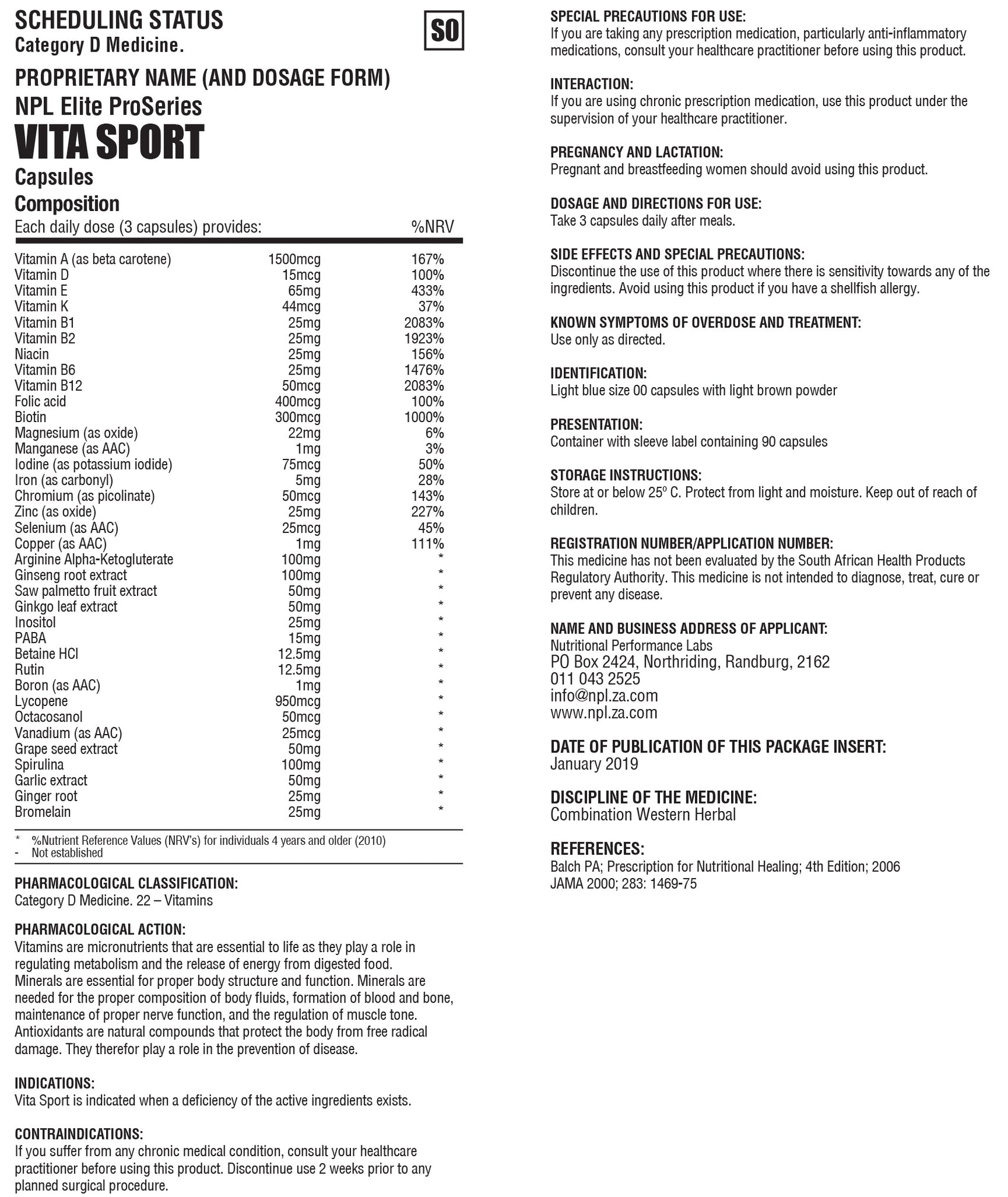 NPL’s Vita Sport provides essential nutritional support for active individuals seeking to improve athletic performance and enhance overall health. Vita Sport contains important nutrients, vitamins, and minerals as well as antioxidants and digestive enzymes which may assist in promoting well-being. Vita Sport has been formulated to ensure sufficient intake of essential nutrients that may be lost or reduced due to dietary restrictions or an active lifestyle. Vita Sport may promote immune function as well as protection against stress and fatigue.