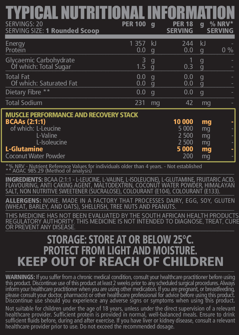 NPL’s BCAA Amino Pro is a nutritional ergogenic aid designed to promote muscle protein synthesis, tissue growth and restoration. Amino Pro contains 10 grams of branched chain amino acids – required for optimal muscle recovery and retention, particularly during times of intense exercise. In addition, NPL’s BCAA Amino Pro contains 5 grams of glutamine – which may help to reduce muscle catabolism (breakdown). Ultimately, BCAA Amino Pro provides several necessary nutrients, in effective dosages, required to improve overall sports performance.