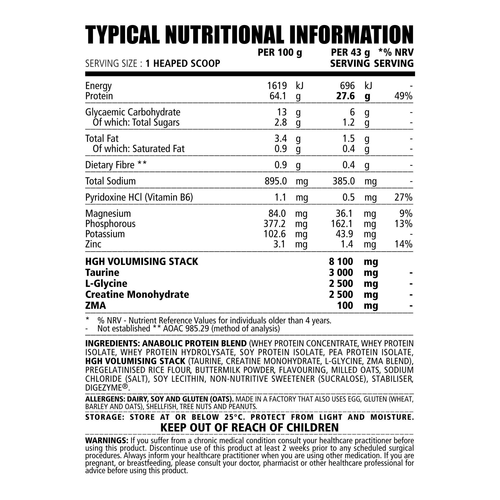 Anabolic Whey is a high-quality protein shake designed for individuals looking to gain lean muscle. Anabolic Whey works with other key ingredients to promote muscle anabolism and enhance muscle protein synthesis. The volumising stack contains creatine monohydrate for increased strength and performance as well as ingredients which may stimulate natural growth hormone production.
